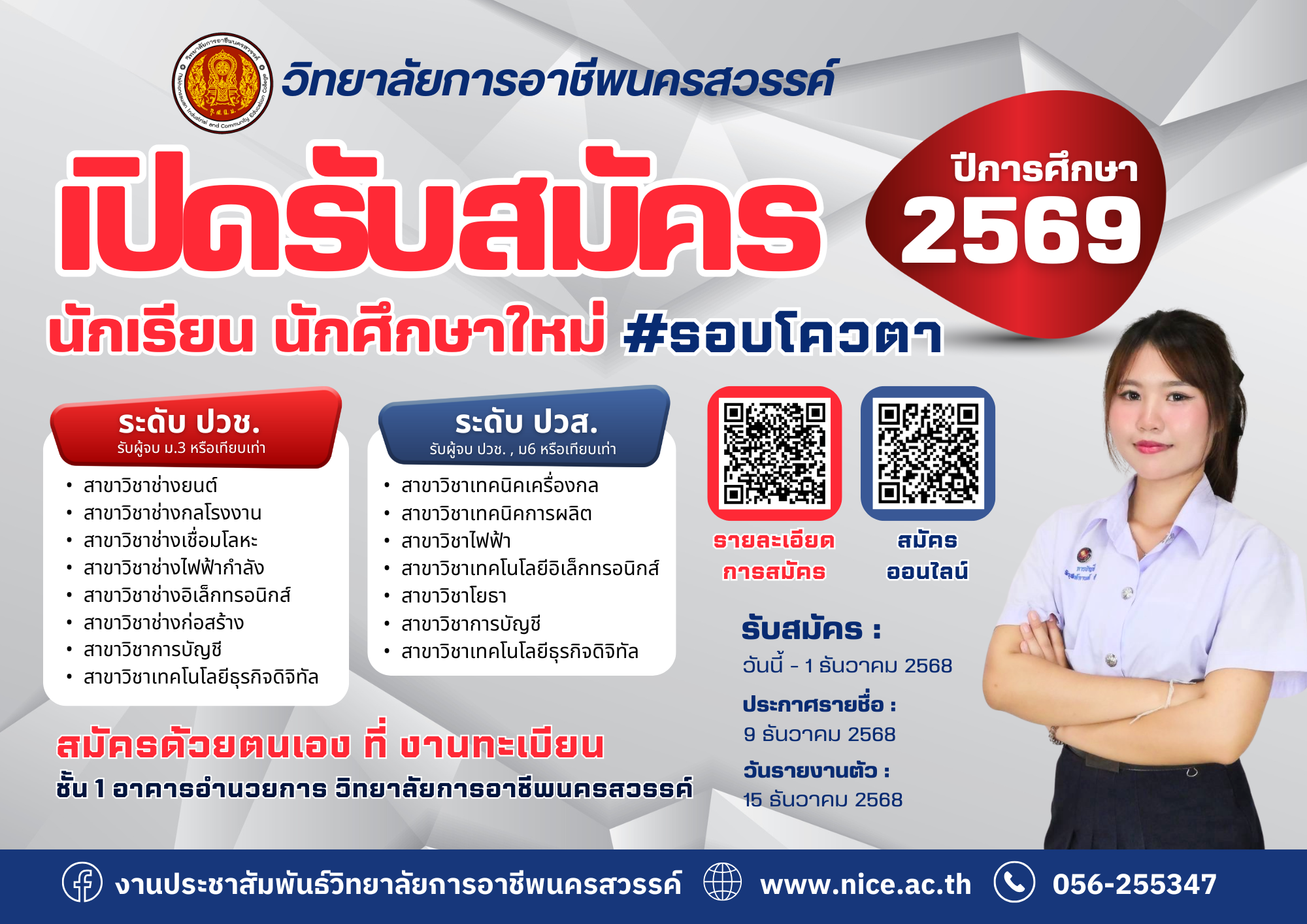 ประกาศวิทยาลัยการอาชีพนครสวรรค์ ประกาศ ให้นักเรียนนักศึกษา พ้นสภาพจากการเป็นนักเรียน นักศึกษา ภาคเรียนที่ 1 ปีการศึกษา 2568